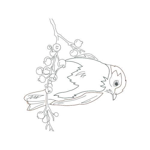A beautiful drawing image. This animals and nature artwork features bird, twig, beak.