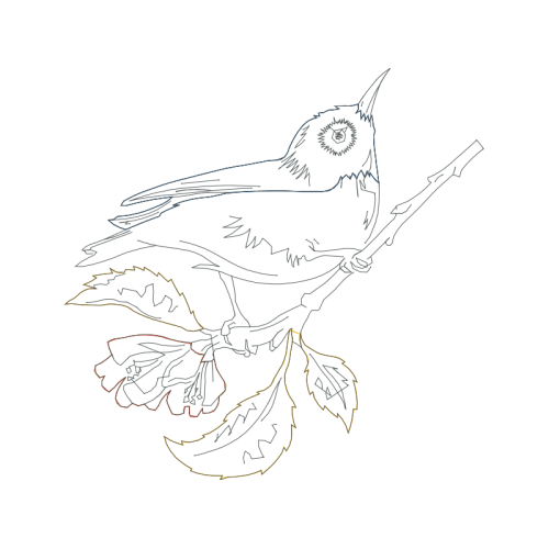 A beautiful line art image. This animals and nature artwork features bird, wing, twig.