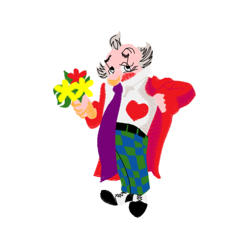 A beautiful cartoon image. This animals and nature artwork features pink, clown, costume design.