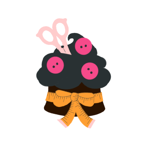 A beautiful cartoon image. This animals and nature artwork features pink, scissors, ribbon.