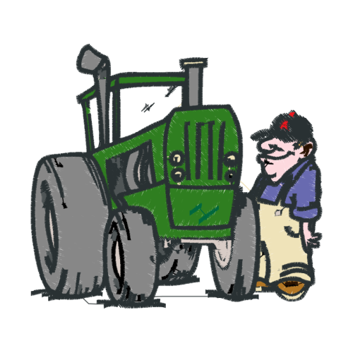 A beautiful cartoon image. This animals and nature artwork features tractor, agricultural machinery, tread.