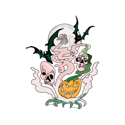 A beautiful cartoon image. This animals and nature artwork features bone, skull, skeleton.