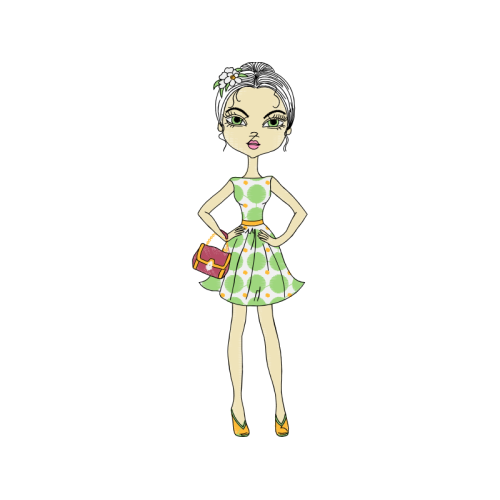 A beautiful illustration image. This people and kids artwork features fashion illustration, costume design, day dress.
