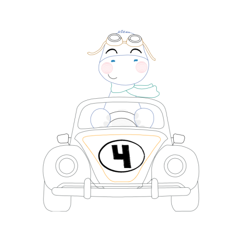 A beautiful line art image. This animals and nature artwork features cartoon, car door, illustration.