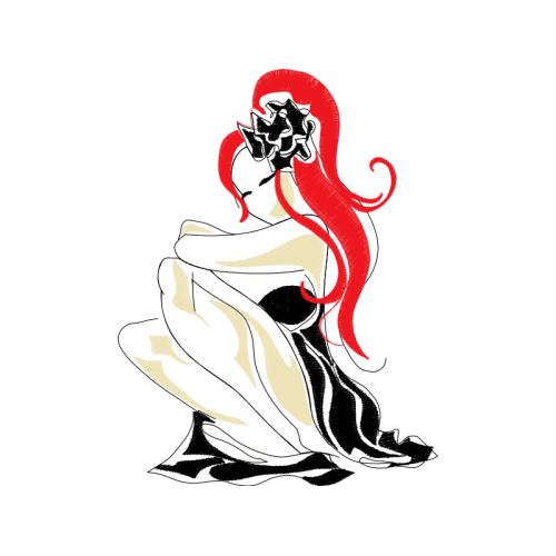 A beautiful image. This people and kids artwork features red, fictional character, graphics.