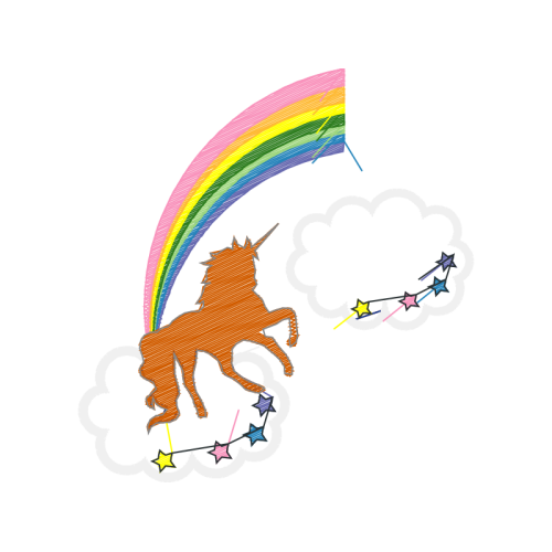 A beautiful graphic image. This animals and nature artwork features rainbow, horse, unicorn.