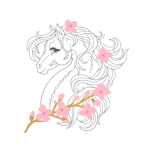 A beautiful line art image. This animals and nature artwork features pink, horse, petal.