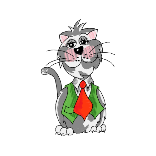 A beautiful drawing image. This animals and nature artwork features cartoon, whiskers, necktie.