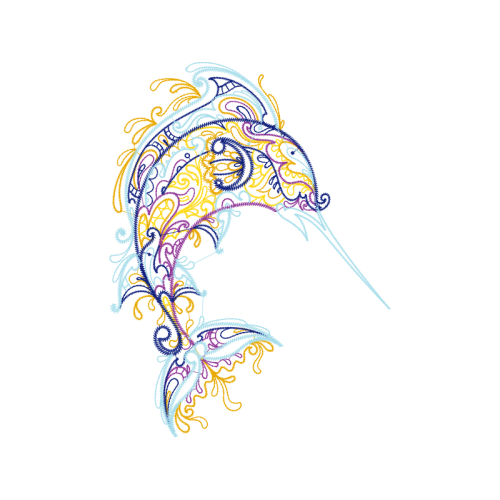 A beautiful illustration image. This animals and nature artwork features fish, dolphin, common dolphins.