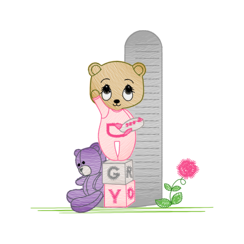 A beautiful drawing image. This animals and nature artwork features pink, teddy bear, toy.