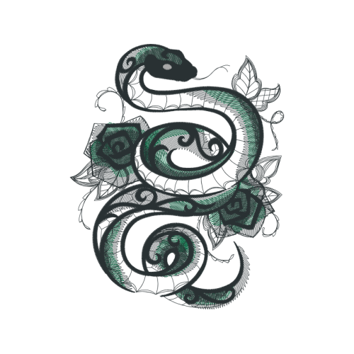 A beautiful tattoo image. This other artwork features scaled reptiles, creative arts, serpent.