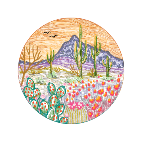 A beautiful drawing image. This flowers and plants artwork features cactus, saguaro, floral design.