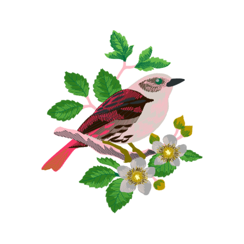 A beautiful eastern kingbird image. This animals and nature artwork features flower, bird, pink.