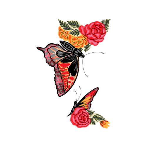 A beautiful garden roses image. This flowers and plants artwork features red, pollinator, butterfly.