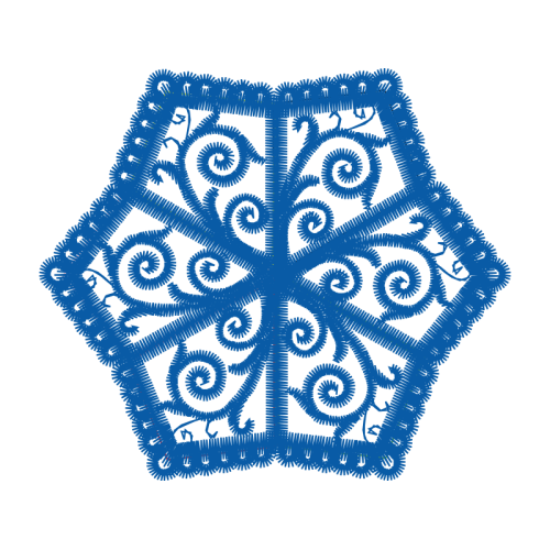 A beautiful blue image. This other artwork features blue, textile, motif.
