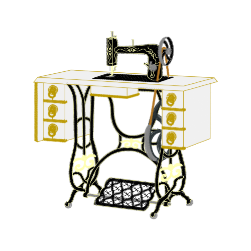 A beautiful image. This hobbies and professions artwork features sewing machine, home appliance, sewing machine feet.