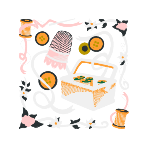 A beautiful illustration image. This hobbies and professions artwork features creative arts, basket, needlework.
