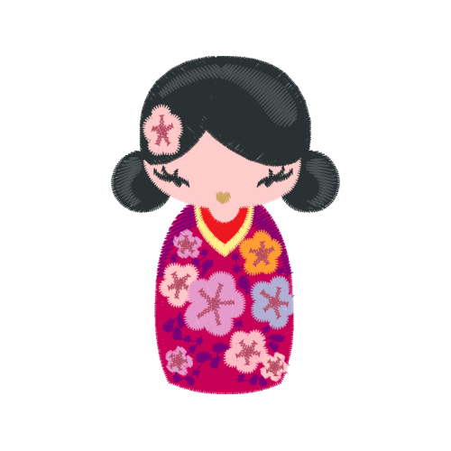 A beautiful needlework image. This hobbies and professions artwork features black hair, textile, pink.