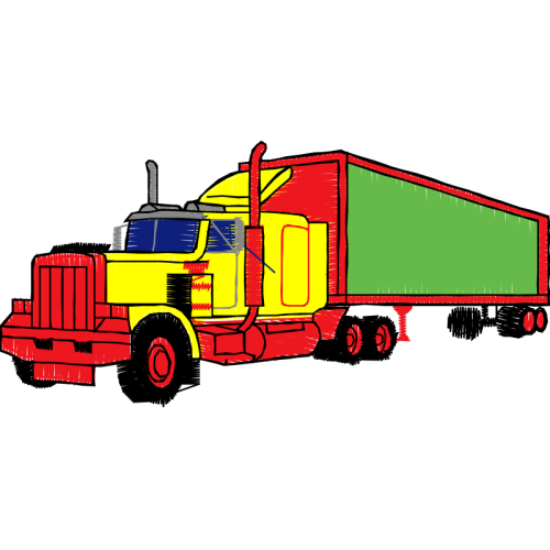 A beautiful art image. This hobbies and professions artwork features commercial vehicle, truck, orange.