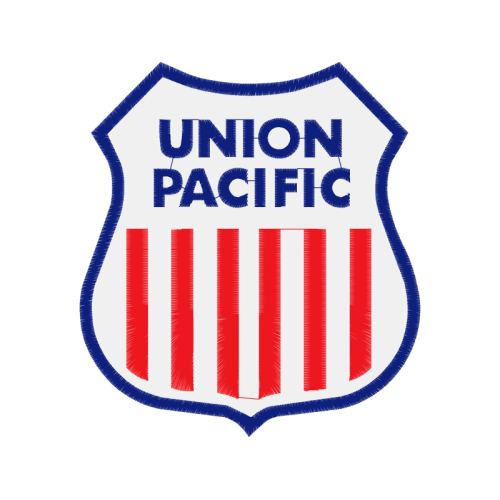 A beautiful union pacific image. This other artwork features logo, emblem, badge.