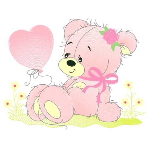 A beautiful illustration image. This animals and nature artwork features teddy bear, love, pink.