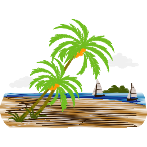 A beautiful babassu image. This other artwork features palm trees.