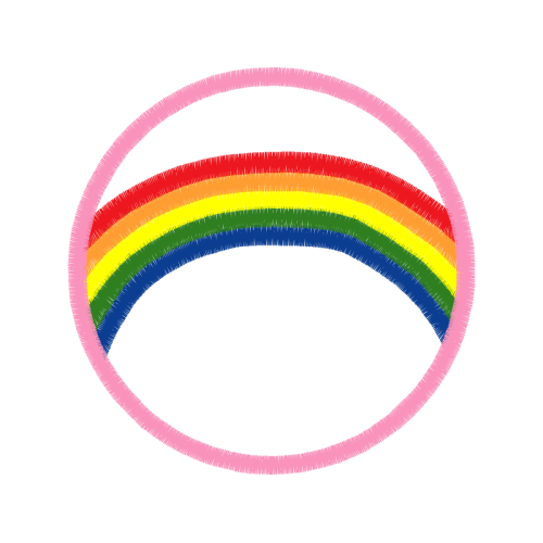 A beautiful circle image. This other artwork features rainbow, yarn.