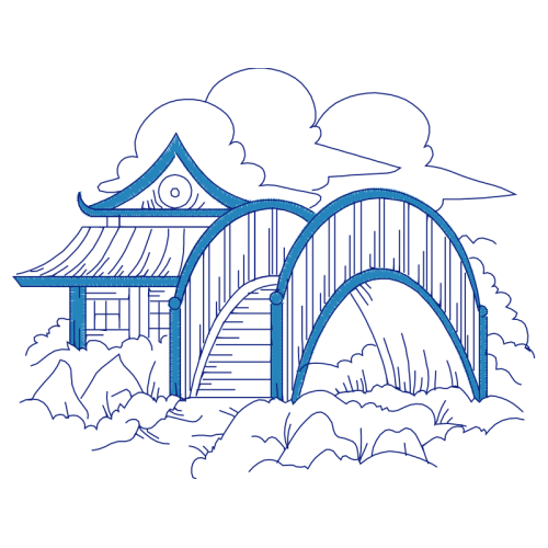 A beautiful drawing image. This other artwork features night, arch bridge, midnight.