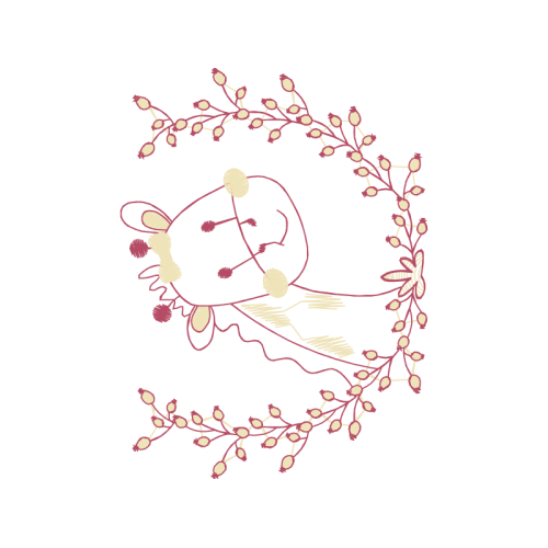 A beautiful drawing image. This other artwork features pink, headpiece, natural material.