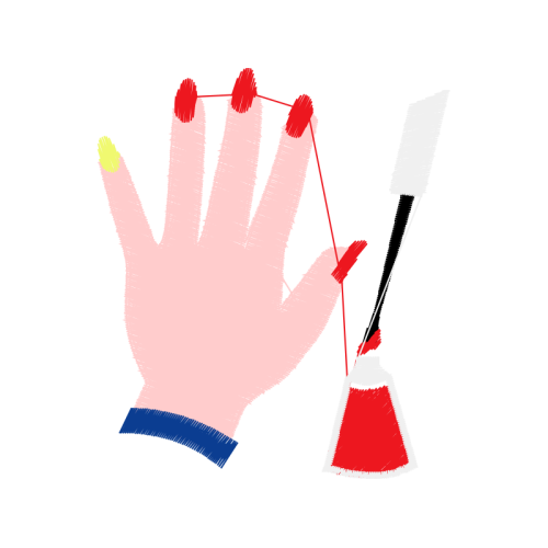 A beautiful meter image. This other artwork features red, finger, wrist.