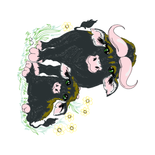 A beautiful visual arts image. This other artwork features livestock.