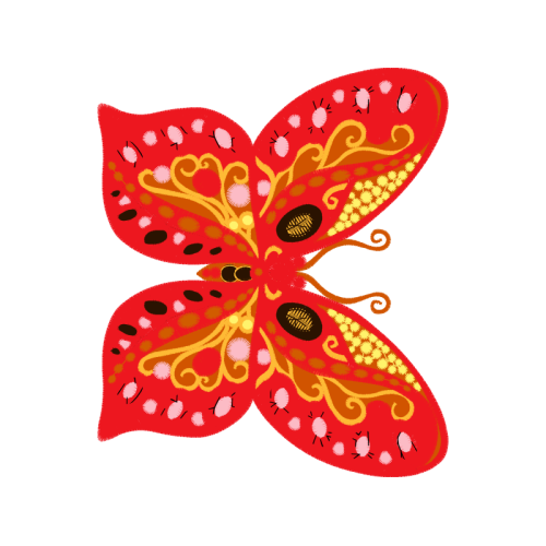 A beautiful red image. This animals and nature artwork features red, pollinator, butterfly.