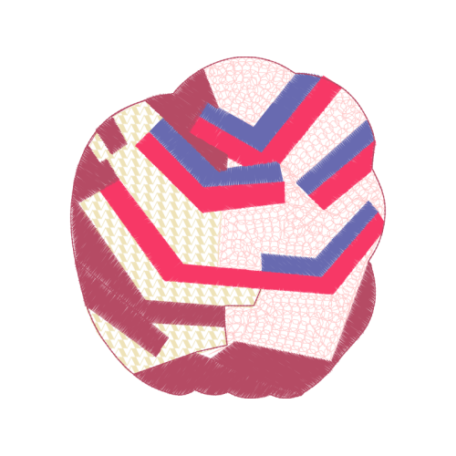 A beautiful ball image. This other artwork features red, textile, pink.