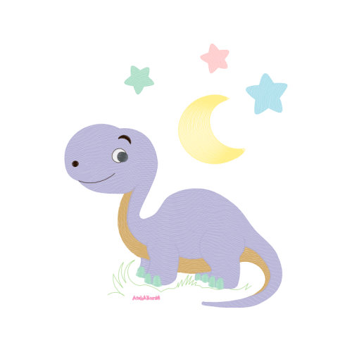 A beautiful cartoon image. This other artwork features dinosaur, astronomical object, moon.