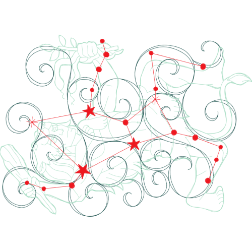 A beautiful line art image. This other artwork features constellation, night, fictional character.