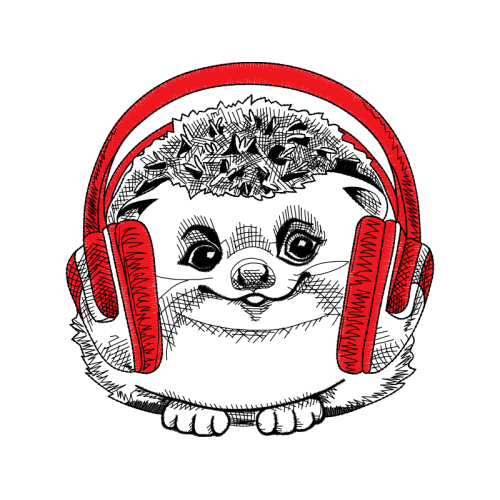 A beautiful drawing image. This other artwork features red, audio equipment, headphones.