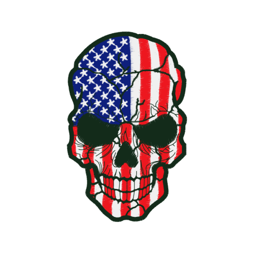 A beautiful illustration image. This patches and badges artwork features red, bone, skull.