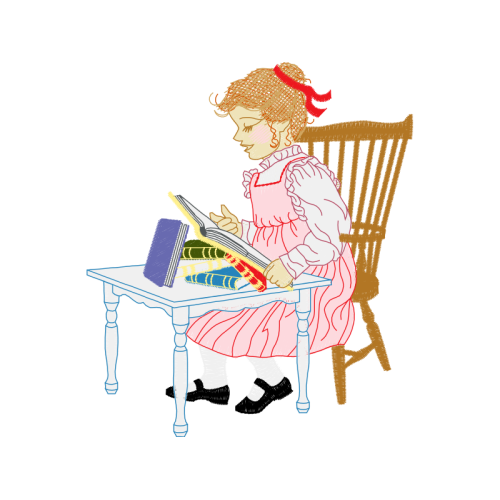 A beautiful drawing image. This people and kids artwork features furniture, illustration, chair.