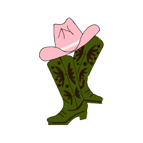 A beautiful illustration image. This animals and nature artwork features hat, sun hat, cowboy boot.