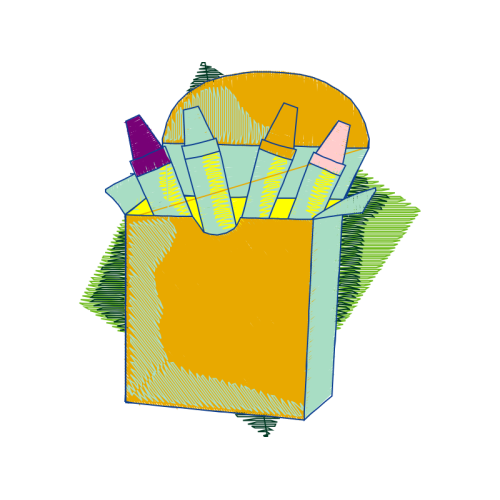 A beautiful illustration image. This people and kids artwork features yellow, paper, paper product.
