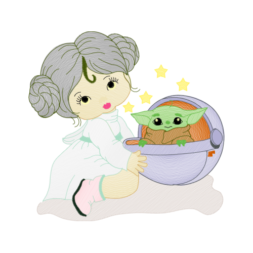 A beautiful illustration image. This people and kids artwork features fictional character, yoda, child.