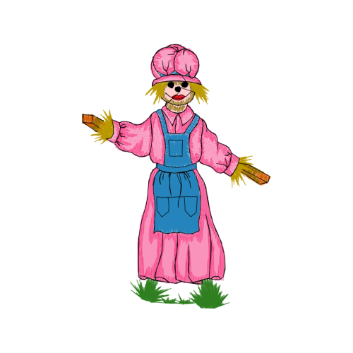 A beautiful illustration image. This people and kids artwork features hat, scarecrow, costume design.