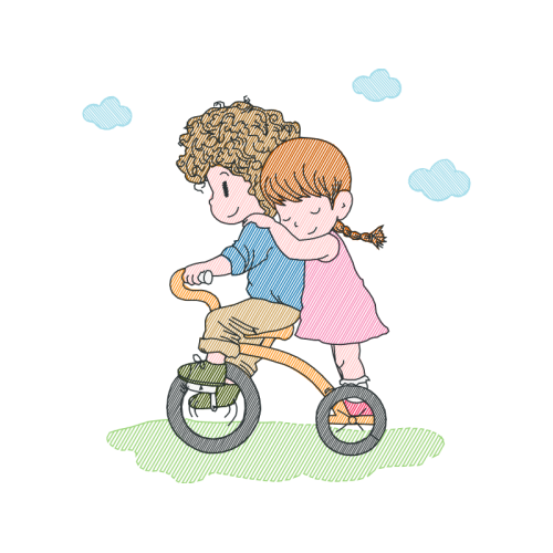 A beautiful illustration image. This people and kids artwork features bicycle, child, bicycle wheel.