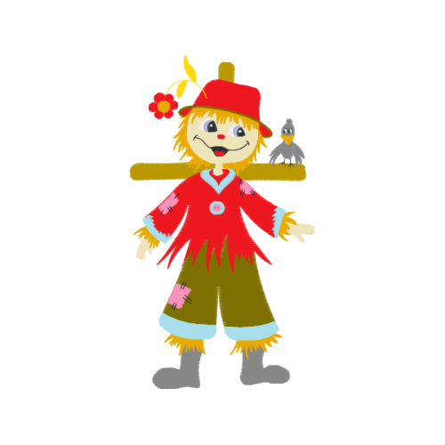 A beautiful illustration image. This people and kids artwork features scarecrow, hat, headgear.