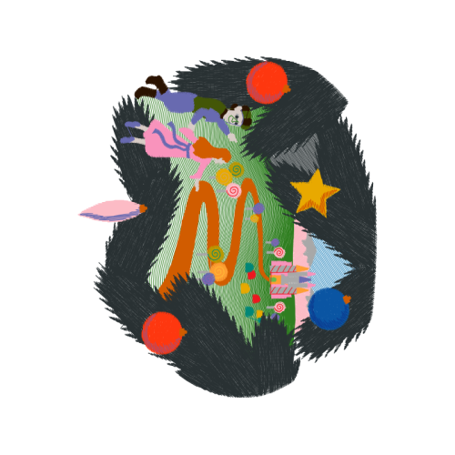 A beautiful image. This people and kids artwork features illustration, night, paint.
