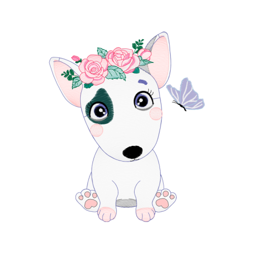 A beautiful english white terrier image. This people and kids artwork features pink, snout, creative arts.
