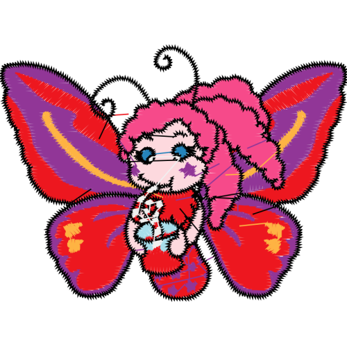 A beautiful cartoon image. This animals and nature artwork features wing, pink, fictional character.