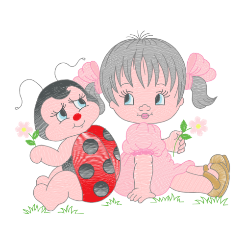 A beautiful drawing image. This animals and nature artwork features facial expression, child, happiness.