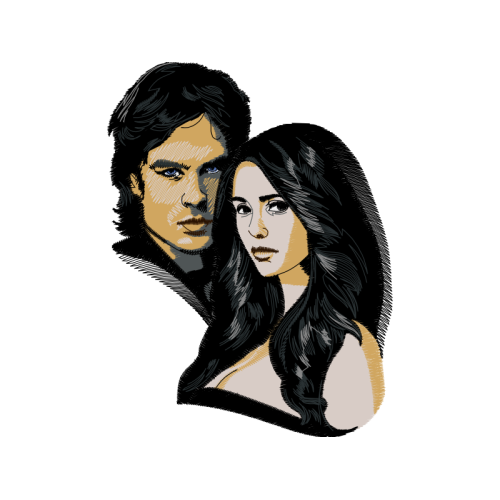 A beautiful illustration image. This wedding and love artwork features black hair, love, no expression.