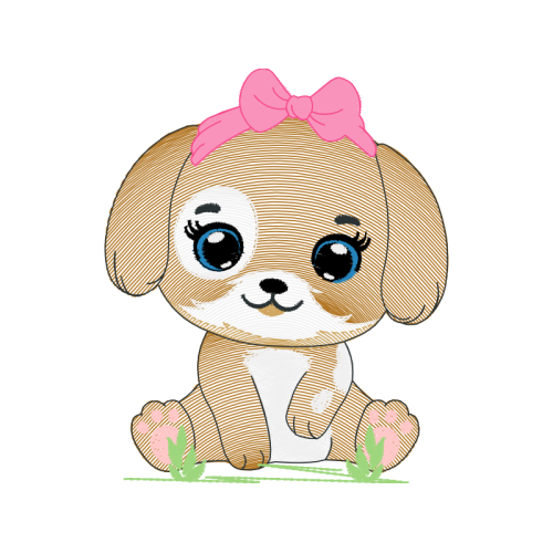 A beautiful cartoon image. This animals and nature artwork features carnivores, dog, puppy.